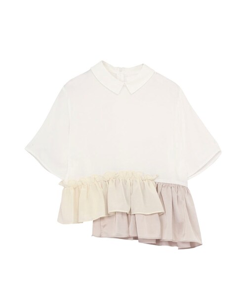 【merry jenny】 PREORDER同時購入対象※こちらの商品は【merry jenny】 PREORDER同時購入対象の記載がある商品との同時購入が可能になります。※発送時期が異なる予約商品同士の同時購入は対象外となります。【予約販売商品】発送予定時期:05月上旬発送予定※予約商品は、商品入荷次第の発送となっております。発送予定時期は、商品の入荷状況により前後する場合がございます。入荷次第ご注文順のお届けとなりますので、予めご了承お願い致します。※こちらの商品は、通常商品・発送時期が異なる予約商品と同時に購入することができません。※商品画像は、サンプルでの撮影のため、色味や仕様の変更がある場合がございます。※予約商品の場合、サイズ・混率の表記がない場合がございます。また、サイズ・混率については変更になることがございますので、 予めご了承をお願い致します。※予約商品の支払い方法は、代金引換支払い、クレジットカード支払いのみとなっております。ジョーゼット・シフォン・サテン、、それぞれの素材と色が1つのシャツになりました。ワイドパンツにアウトで合わせてフリルをなびかせて。