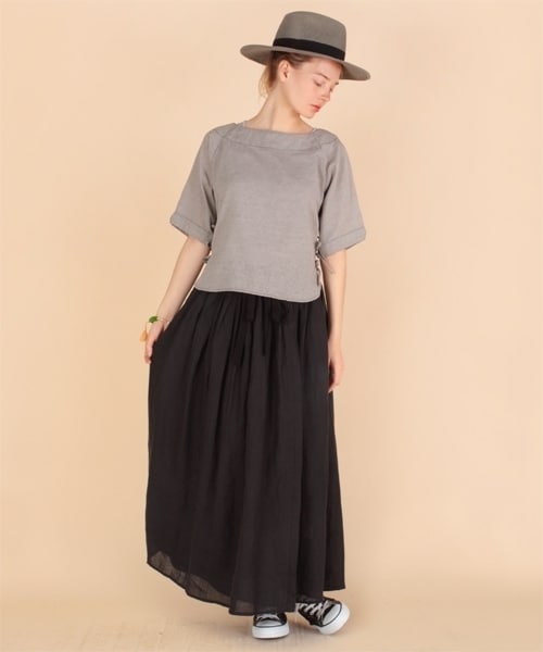●お届け予定 : 2016年5月中旬※こちらは予約商品になります上質なリネン生地を惜しみなく使用しギャザーをたっぷりと施しました。ボリューム感がありながらリネン独特の風合いで爽やかなアイテムに仕上げています。リ ゾート感のあるマキシ丈のラップスカート。フロントが開いてしまうのを防ぐために内側に留め具の紐とボタンが付いています。また裏地も付いているので透け 感も気にならず安心して着用していただけます。ふんわり広がる女性らしいシルエットで夏のフェミニンスタイルをお楽しみ下さい。※画像の商品はサンプルです。実際の商品と仕様、加工、サイズが若干異なる場合がございます。 Model:身長 166 cm 着用サイズ:Mサイズ