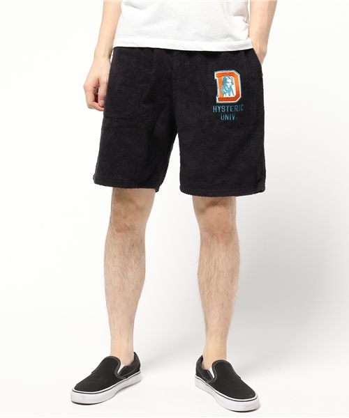 『穿き心地も表情も◎。ソフトなのに丈夫な今治タオル謹製』 国内は基より、世界的にも知られる愛媛県今治市の産地ブランド、今治タオル。繰り返し洗ってもソフトな風合いが長持ちし、糸抜けが少ないといった高品質がその魅力です。HYSTERIC GLAMOURでは今季、この特徴を活かしながら、ファッションユースに向けて強度をアップさせたオリジナルのタオル地シリーズを多数ラインナップ。 こちらの膝丈のイージーショーツは、左腿のレタードパッチ&刺繍がスポーティなアイキャッチに。パイル地ならではの柔らかな起毛感は見た目にもリラックスムードに溢れ、春夏らしい爽快な表情を演出します。そのフンワリとした優しい肌触りは、一度脚を通したらヤミツキ必至です。 『街から近所、レジャーまで! さらにセットアップで一級上に』 街着としてはもちろん、とてもコンフォータブルなので自宅の近所で穿くワンマイル使いにもオススメ。またビーチや水辺などのレジャーにも最適です。もちろん、汚れたり汗を吸っても洗濯機で手軽に洗えるので、ケアを気にせずヘビーユーズできます。また同時発売の共地のパーカとセットアップでキメれば、ワンランク上のオシャレが手に入ります。軽快なスニーカーや旬のスポーツサンダルと合わせて、アクティブなスタイルを楽しんでください。