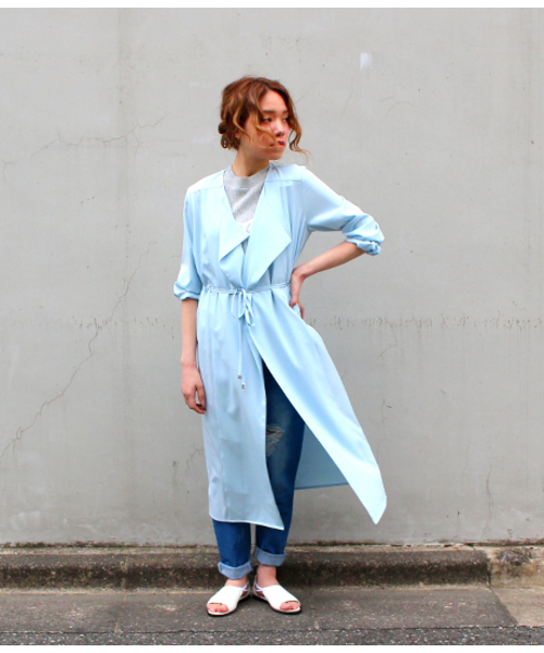 リラックス感&こなれ感を演出してくれるロング丈のオープンカラージャケット。 襟元が開いているので顔まわりをスッキリした印象に導いてくれます。 サッと気ラクに羽織ってもサマになり、ロングスカートと合わせるといい雰囲気をメイクできます。