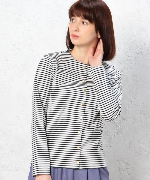 しっかりとしたカットソー素材のカーディガンをご用意しました。細かなピッチのボーダーが落ち着いた雰囲気。またゴールドの釦がさり気ないアクセントになっています。大人なカジュアルスタイルを楽しみたい方におすすめの1枚です。~セール期間中のグリーンレーベル リラクシング各店への在庫のお問い合わせに関して~ セール期間中、セール品の在庫の有無に関して店舗ではお答えできない場合がございます。 また、セール期間中の店舗でのセール品のお取り置きはお受けいたしておりません。予めご了承下さい。 品番: 3627-699-0188