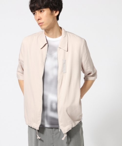 MA-1のデザインを落とし込んだこれからの季節に最適なシャツアウター。 レーヨンを使用し、微光沢と滑らかな生地感にしています。 とても薄く軽い素材なのでこれから夏までお使い頂けるアイテムです。 ジップアップや、裾のドローコード、シャツポケットなど随所にアウターの要素を残したデザインです。 サイズはややゆとりのある仕上がりにしており、前開けで羽織るのにぴったりです。