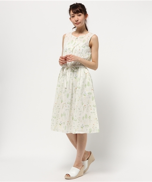 華やかなボタニカルプリントを主役にしたワンピース。ナチュラルな風合いの綿素材は着心地も良く、自然体フェミニンなスタイリングを演出。ウエストはゴム仕様なので腰周りをスッキリと見せてくれ、細身のリボンベルトをキュッと絞れば愛らしくメリハリUP!スカート部分のみ裏地が付いているのもうれしいポイント。サボサンダルやカゴバッグを合わせたレトロガーリーなスタイルがおすすめ◎