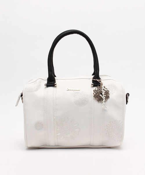 使い勝手のいいサイズのボストンバッグ。型押しの合皮仕様で、本体にはブランドを象徴する幾何学柄であるギャラクティック柄を刺繍しました。ショルダーバッグにもなるので、長い時間の移動もらくらく。ちょっとした旅行にも一緒に連れて行ってほしいアイテムです。