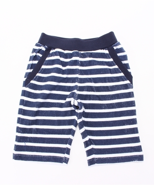 手触り、着心地ともに快適なパイル素材を用いたボーダー柄のショーツです! イージーに着られる気軽さで、窮屈なのが苦手なキッズもオススメ☆ 同デザインのパーカーとセットアップでコーディネートすることもできますよ!