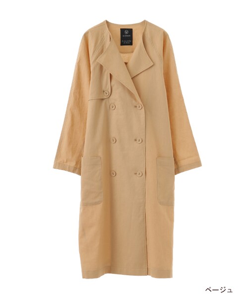 春夏にぴったりの涼しいコットンリネン素材のノーカラーコート。シンプルなデザインでありながら、ノーカラーは女性らしいフェミニンな印象になります。ゆるめのスリーブで袖通しもよく、さらりとしたドライな肌触りが◎。裏地なしなので気軽に羽織れ、カジュアルな着こなしにもさらりと着れるオススメの1枚です。