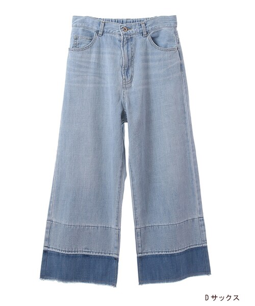 【SPRiNG 5月号掲載】【RUDI 春夏号掲載】【mer 6月号掲載】【CLUEL 5月号掲載】定番デニムと、ひと味違うデニムがこの春夏の注目アイテムです。切りっぱなしの裾やヒゲ・ブラスト加工による程よいヴィンテージ感などの裾加工が可愛い、オススメのデニムパンツ。後ろウエストにゴムが入るので履きやすさも◎。ワイドなシルエットなのでコンパクトなトップスや、あえてゆるっとしたトップスとのコーデがおすすめです。※デニムトップスとセットアップで着るのもおすすめです。