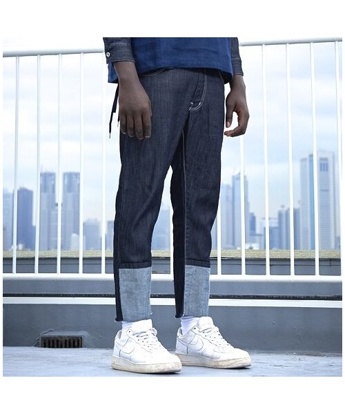 とても軽いライトオンスデニムパンツ 裾を折り返したようなデザインがポイント 裾の後ろ側は切りっぱなしの仕様です。 ストレッチ入りでとても履きやすく様々なスタイルに合わせやすいアイテム LOOK MODEL size S着用 身長 185cm SONAR MODEL size S着用 身長 170cm MATERIAL COTTON 98% POLYURETHANE 2% SIZE S 総丈 84cm ウエスト 80cm 股上 26cm 股下 62cm 裾幅 17cm
