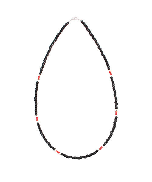 ビーズをあしらったネックレス。シンプルなデザインで手軽に着こなしのアクセントになります。これ一つで着用頂くのは勿論、既にお使いのネックレスに合わせた重ね付けもオススメ。男女問わずユニセックスでお使い頂けるので、ご自身用は勿論、プレゼントにもオススメです。