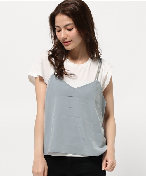 今季旬なレイヤードが手軽に楽しめる、キャミソール+Tシャツのセット。キャミソールは華奢なストラップが女性らしく、スッキリとした胸元のV開きがスマートな印象をもたらします。ほどよい広がりのフレアスリーブは二の腕周りのカバーにも効果的!シンプルなルックスなのでボトム合わせに迷わず、それぞれ単品使いでのコーディネートもできる便利なアイテムです。