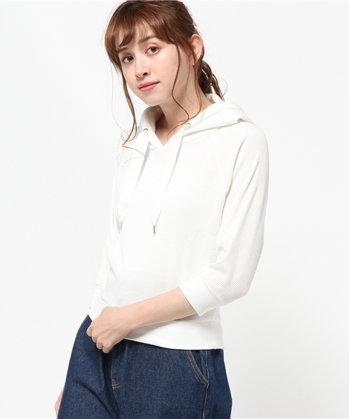 5分袖×クロップド丈でスッキリと着こなせるラグランパーカー。 光沢テープを使用したフード紐が大人っぽく、凹凸のあるサーマル生地は肌触りも優しく快適に着こなせるのもポイント。 定番色の展開で着回しの利くシンプルなアイテムは、ワイドパンツやロングスカートなどのボリュームボトムとのコーデがおすすめ。