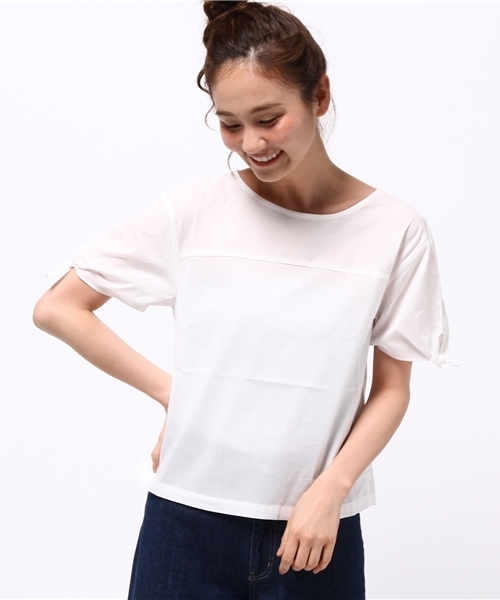 無地、ギンガム2色展開のリボン袖口ブラウス。袖口をきゅっと結べるリボン仕様でアクセントになっています。ギンガムの2色はヨークをバイヤスにしているので、すっきりとした視覚効果もあります。パンツとスカートどちらにも合わせやすい、すとんとしたシルエットで、着回し力も◎です。