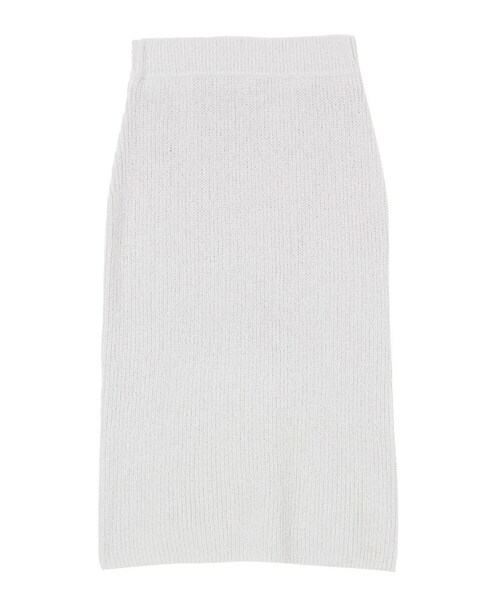 ブークレニット素材のタイトスカート。丈が長めでもバックスリットが入っているので女性らしさもプラスしてくれます。同シリーズのキャミソールとあわせて着れば、ニットセットアップで今年らしいスタイリングになりオススメ◎。