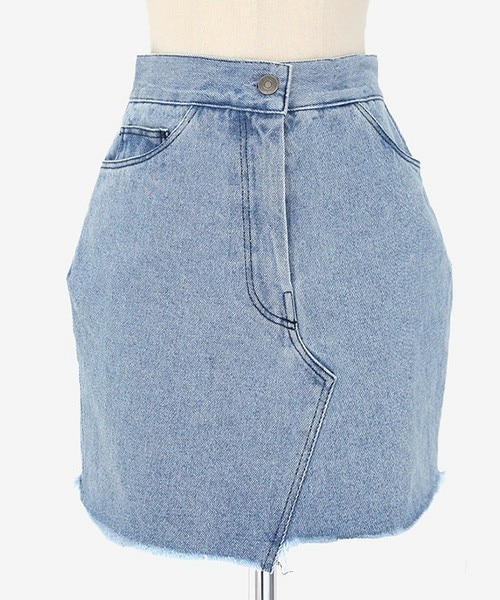 ミニ丈のタイトフィットでスリムなラインを演出してくれる デニムスカート。ユニークなフレイドヘムポイント。 アンバランスな裾のカットラインがコーデを印象的にします。 ※WEARに記載してある金額と、DHOLIC通販サイトに記載してある金額にシステム都合上、稀に誤差が生じます。正しい金額はDHOLIC通販サイトに記載された金額です。