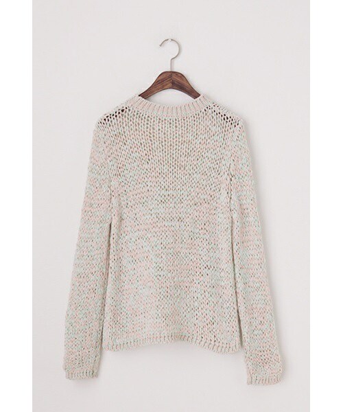 ローゲージのざっくりとした編み地が可愛い MIXニットをご紹介いたします。 ミント×ピンクのMIXカラーが素敵な フェミニンなムードのニットです♪ ぴったりし過ぎずほど良いゆとりがあり ルーズなシルエットなのも今っぽくて◎ 透け感もあるのでこれからの季節にピッタリ! 春夏に大活躍しそうなアイテムです★ ◆COLOR : ミント×ピンク ◆SIZE : FREE ◆モデル着用SIZE : ミント×ピンク/FREE