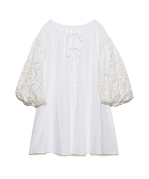 ペイズリーライクなカットワーク刺繍を施した、オリエンタルムードあふれるやわらかいコットン素材のワンピース。すとんと落ちるボディシルエットとボリュームを持たせたスリーブとの対比がおしゃれ。ミニ丈と透かしデザインで、ヌケ感も楽しめる大人の為の1枚です。※商品画像はサンプルのため、色味やサイズ等の仕様に変更がある場合がございますので、予めご了承ください。※裾にも刺繍が入ります。※カタログのモデル着用が正となります。