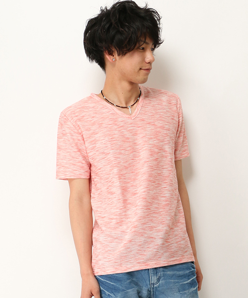 パイルのような表面感があるミックスカラーのTシャツ☆ シンプルですが素材感にトレンド性のあるアイテムとなっています! 一枚着としてはもちろん、シャツのインに着ても主張してくれますよ!