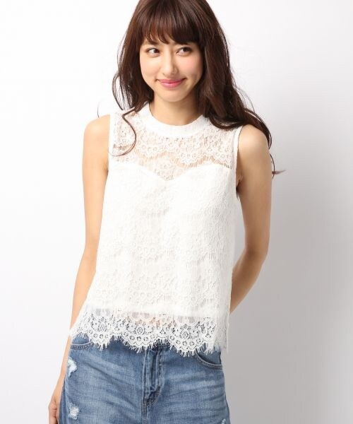 今年マストバイの総レーストップス。デコルテが透けたビスチェ風デザインで女っぽさ満点!!メイントップスにしても、オーバーキャミをレイヤードしても可愛い♪身頃部分は裏地付なので透けにくくなっているのも嬉しいポイント。