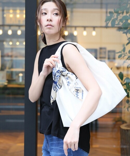 身体になじむ柔らかな合皮を使い、くったり感を出したバッグは、程よい大きさである程度物が入るので、デイリユースにオススメ。口が大きく開くので、物の出し入れもしやすく、ポケットも付いているので小物は別で収納できます♪肩からかけることもでき、使いやすさも抜群です!スカーフは取り外し可能なので、外してシンプルにも◎また、スカーフを別のバッグに付けたり、ヘアアクセや手首に巻いても使えます!