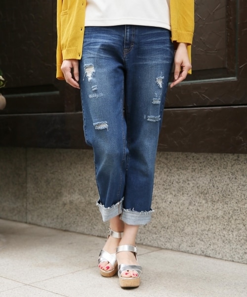 春から夏にかけてのヘビロテアイテムといえばクロップドパンツ!中でもデニムは着まわしもしやすくてオススメの1点。ストレッチが効いているので、動きやすく穿きやすさも抜群。裾の切りっぱなしのほどいた加工もポイント。ヒールのシューズと合わせた甘×辛ミックスなスタイルもオススメ。
