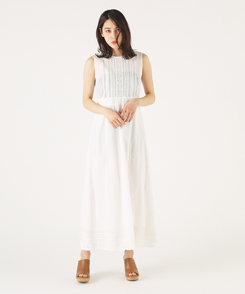 コットンレースを贅沢に使ったロングワンピース★上品さとエレガンスを落とし込んだ大人な表情が◎ 裏地有りです。