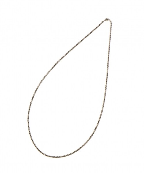 独特のデザインチェーンが目を惹くアイテム。合わせ易くシンプルな仕様になっており、トレンドのモチーフアクセサリー等、インパクトのあるアイテムとの相性は抜群です。シンプルに単体で使うも良し、重ね付けしても良しな万能アイテムです。