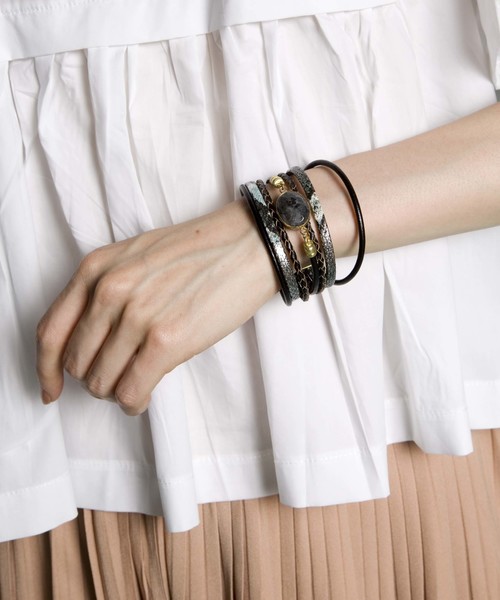【カッコ良さと女らしさを両立させる春夏のマストアイテム】▼デザイン光沢のあるパイソン柄が洗練された大人カジュアルを作ります。細めの7連ブレスレットは適度なボリュームがあるので、シンプルコーデが多い方に特にオススメです。プチプライスなのでちょっとしたプレゼントに贈っても◎▼ポイントマグネット式なので着脱が楽々。メンズライクなデザインは柄物とも相性が良く、様々なアイテムと合わせて頂けます。――――――――――――――――――――――――‐PLAIN CLOTHING/プレクロ‐今を生きる洗練されたニュートラルな女性のためのブランド「モノ」を通じて「コミュニケーション」を作り出していくこと We wish you happiness. あなたに幸せを。