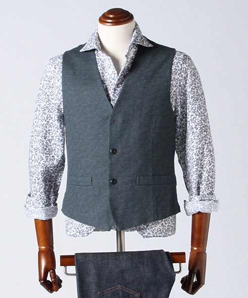 洒脱な生地が魅力を生む、春夏コーデの新定番。 トレンドアイテムのジレを、清涼感と小慣れ感のある生地で展開。凹凸のある、独特な表情を生む生地は、大人カジュアルに最適な上品さと抜け感を演出。程よくスリムなシルエットと、コンパクトな着丈にシンチバックの付く、現代風で本格的なディテールもにも注目。上品なジャケットにも、リラックスしたカジュアルな着回しにも最適な、春夏コーデの強い味方です。 様々なコーデに対応する点もポイント。 品の良さとカジュアル感を兼ね備えている為、キレイメなチノはもちろん、デニムやショーツなど、様々なパンツに対応可能。シャツやカットソーの上からさらりと羽織るだけでも、スタイリングを上品な印象に昇華します。爽やかな配色の四色展開は、コーデに取り入れ易い点が強みです。