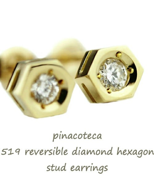 「 Reversible Diamond 」 シンプルな一粒ダイヤの裏には柄の入った透かしが入るシリーズ ひとまわり大きく見える六角形の一粒ダイヤ ピアスです。 ロクボウセイ柄のスカシが裏にデザインされています。 定番として、ひとつは持っていたい華奢 一粒ダイヤモンド ピアスです。 程よい存在感と華奢加減のバランスがよく手放せない存在になりそうです。 18金イエローゴールド製