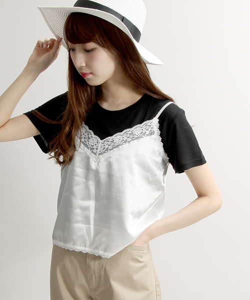 今季トレンドのランジェリー風キャミソール。レースデザインが手軽に着こなしのアクセントになります。Tシャツなどと合わせるのは勿論、スカンツと合わせたフェミニンな着こなしや、デニムに合わせたカジュアルな着こなしなど、幅広いコーディネートをお楽しみ頂けます。今季はアクセサリーやスニーカーなど、小物で遊びを効かせたコーディネートもオススメです。