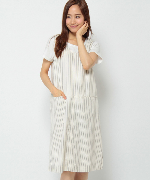 深めのVネックがポイントになったノースリワンピースは、インにTシャツやカットソーを合わせるコーディネートもおすすめ。柔らかい風合いながら、しっかり感のある素材のためシルエットがきれいに出ます。サイドにはスリットを入れて軽やかな印象に。