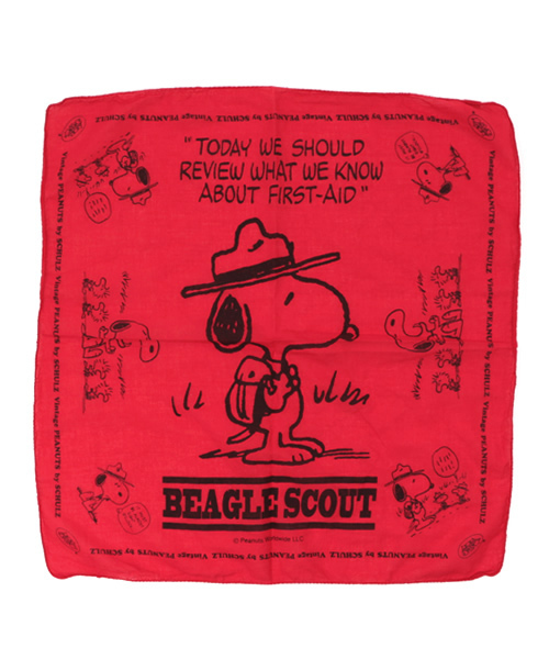 大人気の「PEANUTS」から、ビーグルスカウト柄スヌーピーのバンダナが登場!包んで使用するのはもちろん、髪の毛や首、腕に巻いたり、Bagに巻いたり...と、使い道は様々でいろいろな用途にお使い頂けます。お手頃価格なので、ちょっとしたギフトにも最適です。