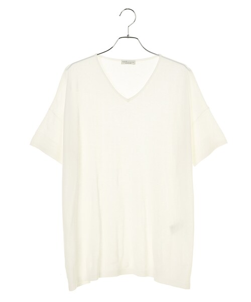 リラックスムードたっぷりに着こなせるボックスシルエットのニットチュニック。肌離れの良いシルエットと透け感のある薄生地使いで着心地も涼やか。シャープなVネックがヌケを添え、デコルテの華奢見せで女性らしさもいっそう高まります。シンプルなルックスでコーディネートに馴染みやすく、デイリーに頼れるアイテム◎あえてボリュームボトムを合わせて、ラフに仕上げるのもおすすめ◎