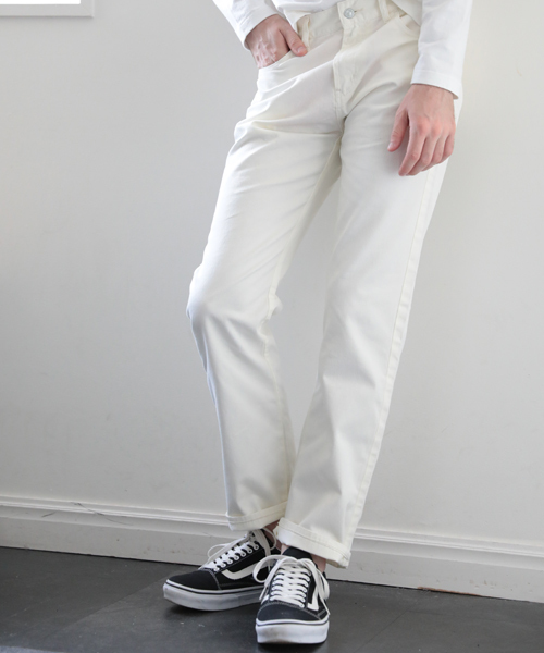 薄手のコットンツイルで仕立てた、 夏仕様の5ポケットパンツ!! デニムのディテールをベースにした 5ポケット仕様の長丈パンツ。 スラックスタイプやチノタイプとは1味違い、 よりカジュアル色の強い新作パンツです。 生地は薄手のコットンツイル素材で、 製品染めで仕立てている為、 着込んでいくことで色落ち・色褪せもお楽しみ頂けます。 こなれた風合いに育てて頂けるのもこのパンツの特徴です。 シルエットはベーシックなミドルストレートで、 トレンドのワイドパンツよりはすっきりと仕立て、 着回しの効くサイズ感で仕上げているのがポイントです。 こちらの商品はD16SS-355のジャケットと セットアップでお使い頂け、 ローファーやシャツなどでキレイめに合わして頂いたり、 ボーダーや無地などのTシャツとの シンプルなセットアップコーデにも大変オススメです。