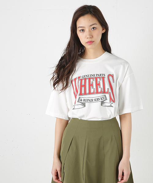 古着のTシャツからイメージしたデザインがポイント。Tシャツの季節に来たくなる大きめのBODYはインしてもアウトしても可愛いです。