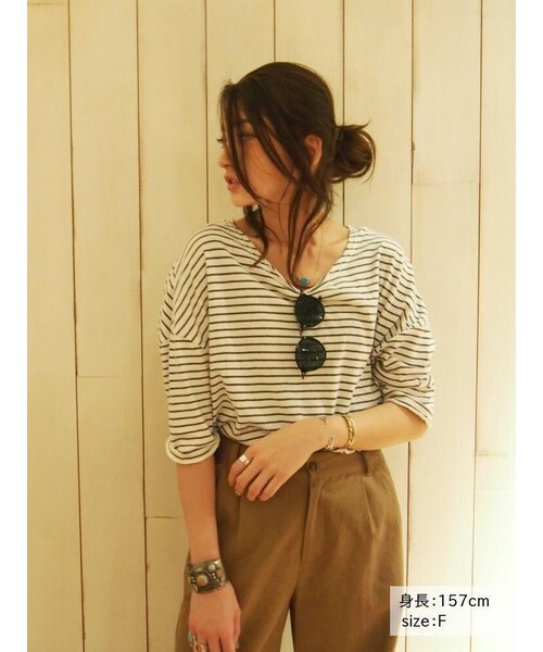 アイテム説明─────────────────────────── カジュアルなボーダーロンT。裾や首元はカットオフされ、サイジングもルーズでカジュアルですが、首元は広めに取り、少し女性らしい印象に。※商品画像は、サンプルでの撮影のため、色味や仕様の変更がある場合がございます。