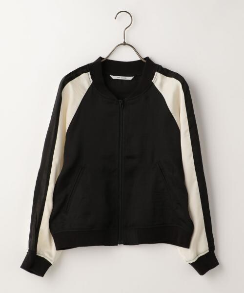 光沢感のあるサテン素材が存在感を放つスカジャン。袖の切り替えデザインをワンポイントに、シンプルかつスタイリッシュに仕上げました。ガーリーボトムと合わせたテイストミックススタイルで、おしゃれ上級者風に着こなすのがオススメです♪
