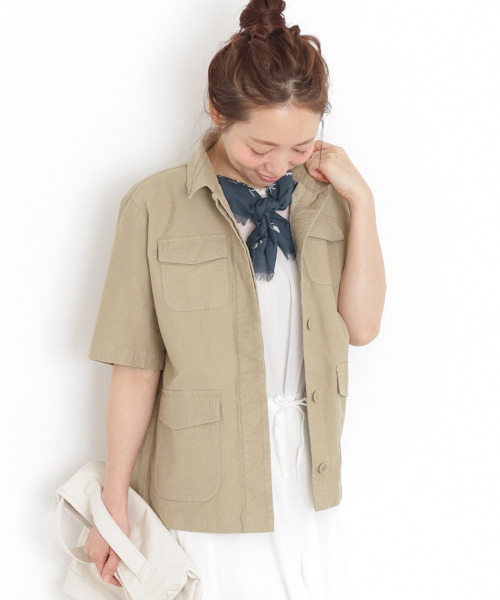これからの季節の羽織にぴったりなサファリシャツジャケット。ミリタリー感のあるポケットデザインで、カジュアルライクに仕上げています。ボタンを閉めてトップスとしてもお使い頂けます。