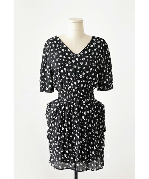 レトロ感漂うフラワー柄の ワンピースをご紹介いたします。 涼しげで真夏まで着まわせるのが嬉しい! 袖丈が充分にあるので羽織が無くても◎ ウエストゴム部分にはたっぷりギャザーが入っているので メリハリのあるシルエットです★ シューズで遊んでみたり、 帽子やアクセサリーで変化をつけるのもおススメ♪ ◆COLOR : ブラック ◆SIZE : FREE(short)、FREE(long) ◆モデル着用SIZE :ブラック/FREE(short)