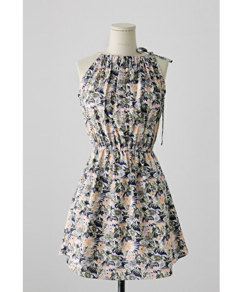 カラフルなボタニカル柄が目を引く ワンピースをご紹介いたします。 ウエスト切替えフレア感を出したスカート! ホルターネックでショルダーラインを華奢に見せてくれます★ カジュアルになりやすいボタニカルも 素材やディテールでフェミニン感をアップ! リゾートさながらのリラックス感を 感じさせるアイテムです♪ ◆COLOR : ネイビー ◆SIZE : FREE ◆モデル着用SIZE :ネイビー/FREE