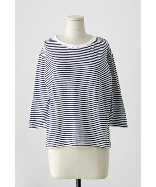 カジュアルな着こなしができる ボーダーカットソーをご紹介いたします。 ベーシックで着まわしの効く シンプルなデザインで様々なボトムと好相性◎ シワにもなりにくいのでケアに手間もかからず デイリーウェアとして文句なしの1枚! 定番のスキニーやデニムなどとコーデしても 洗練された大人できれいな印象にしてくれます。 ◆COLOR : ネイビー ◆SIZE : FREE ◆モデル着用SIZE :ネイビー/FREE