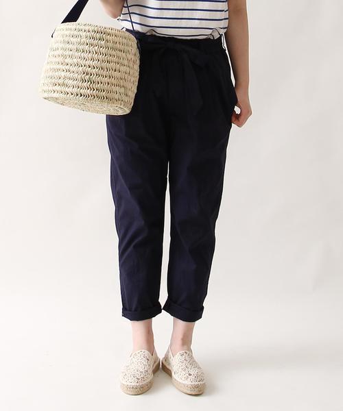程よい余裕テーパードラインでスッキリ見せが叶う1本♪ コットンならではのサラッとした風合いが快適な履き心地のパンツ。 テーパードラインでスッキリとした足元を演出しつつも、ウエストにタックを入れて女性らしい立体感をプラスしました。 キチンと感のある雰囲気ながらウエストゴムデザインで気軽に履ける♪ 取り外し可能なリボンがほんのりとした甘さを添えるアイテムです。 ※実店舗と発売時期が異なることがございます。 あらかじめ御了承下さい。 店舗にお問い合わせの際は、全国のコーエン各店まで下記の品番をお申し付け下さい。 品名:◎B ブロード ウエストリボン PT 品番:7640-627-6030
