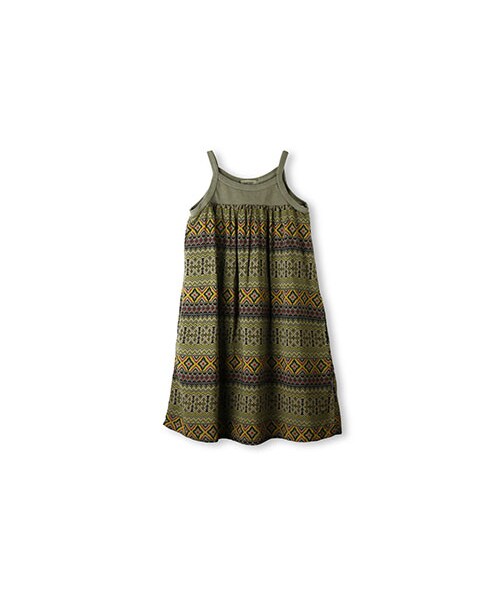 ヴィンテージ感のあるエスニック柄使いのサンドレスです。肩部分はカットソー使いで着心地もGOOD!リゾートの雰囲気もありお出かけにも使える1枚。オンオフ使える優れものです!