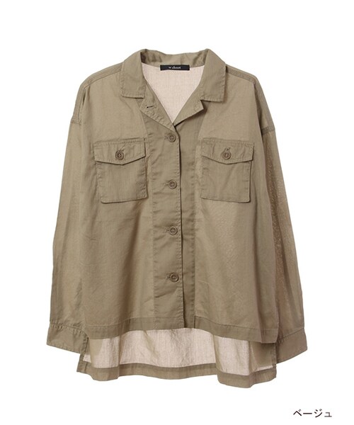 【FUDGE 6月号掲載】メンズライクなコットンカルゼのミリタリーシャツ。ワイドサイズが可愛いです。スリットも入っており、今年らしいこなれ感のある1枚。シャツなのでそのまま1枚で着るのはもちろん、軽い羽織として着るのにも便利なアイテムです。