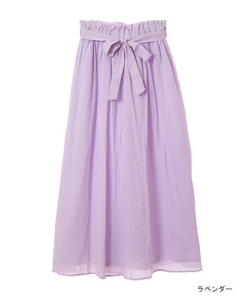 春夏らしいカラーリングが目を引くロングスカート。涼しくて軽いコットン素材なのもうれしい。ウエストはフリルになっており、共布のリボンベルトが付いているのでINコーデがおすすめ。シンプルにブラウスやカットソーとコーデしたい1枚です。※裏地が付き、ウエストはゴムになります。