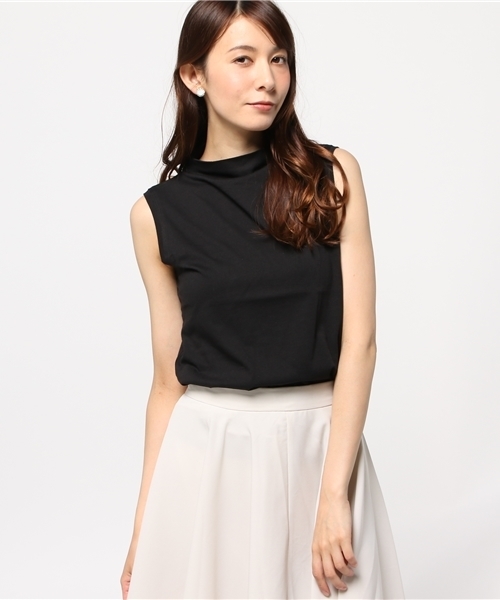 コンパクトめに着こなせるボトルネックノースリプルオーバー。コットンで清涼感があり、モードな無地のチビボトルネックで大人顔なデザイン。トレンドのワイドパンツやロングスカートとコーディネートしやすいです。フレアスカートINや、コンビネゾンのインナーとしたり、着こなしの幅を広げてくれます。