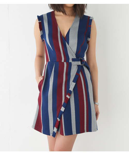今季のテーマを感じさせる、オリジナルカラーのマルチストライプ柄をジャガード織りで作った、一枚でインパクトのあるワンピース。一枚でさらっとはもちろん、ボトムにフレアデニムを合わせても今年らしいです。