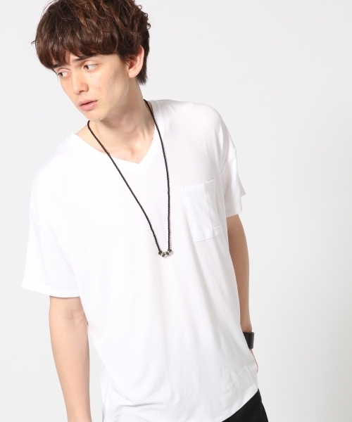 上品な質感のVネックカットソー。 程好い落ち感と光沢感を演出する為にモダール生地を使用。 ややゆったりとしたサイジングに落ち感を付けることで、シャープな印象を崩さず、 リラックス感のあるカットソーに仕上げています。