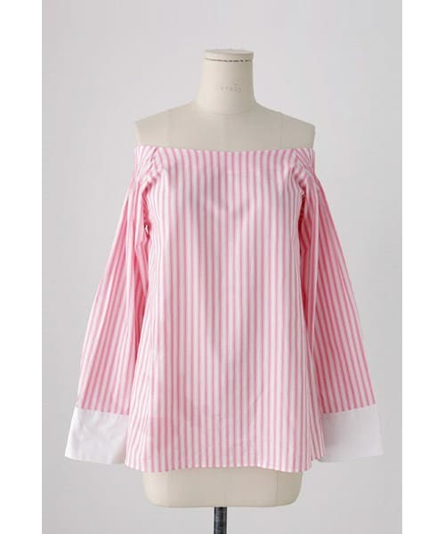 今シーズン注目のトレンドアイテム オフショルダーブラウスをご紹介いたします。 ピンク色の爽やかなストライプ柄が 着る人の顔色を明るく見せてくれます◎ 首から鎖骨にかけてのデコルテがきれいに見え 華奢な印象と、小顔効果も期待できるアイテム! 大きめの白いカフスがコーデにアクセントになり 可愛いだけじゃない1枚です♪ ◆COLOR :ピンク ◆SIZE : FREE ◆モデル着用SIZE : ピンク/FREE