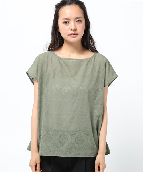 透け感を出すオパール加工で柄を表現したプルオーバー。総柄ながらオパール加工のエアリーな風合いで上品に着こなすことができます。身体のラインを拾わないシルエットは暑い季節でも快適な着用感。